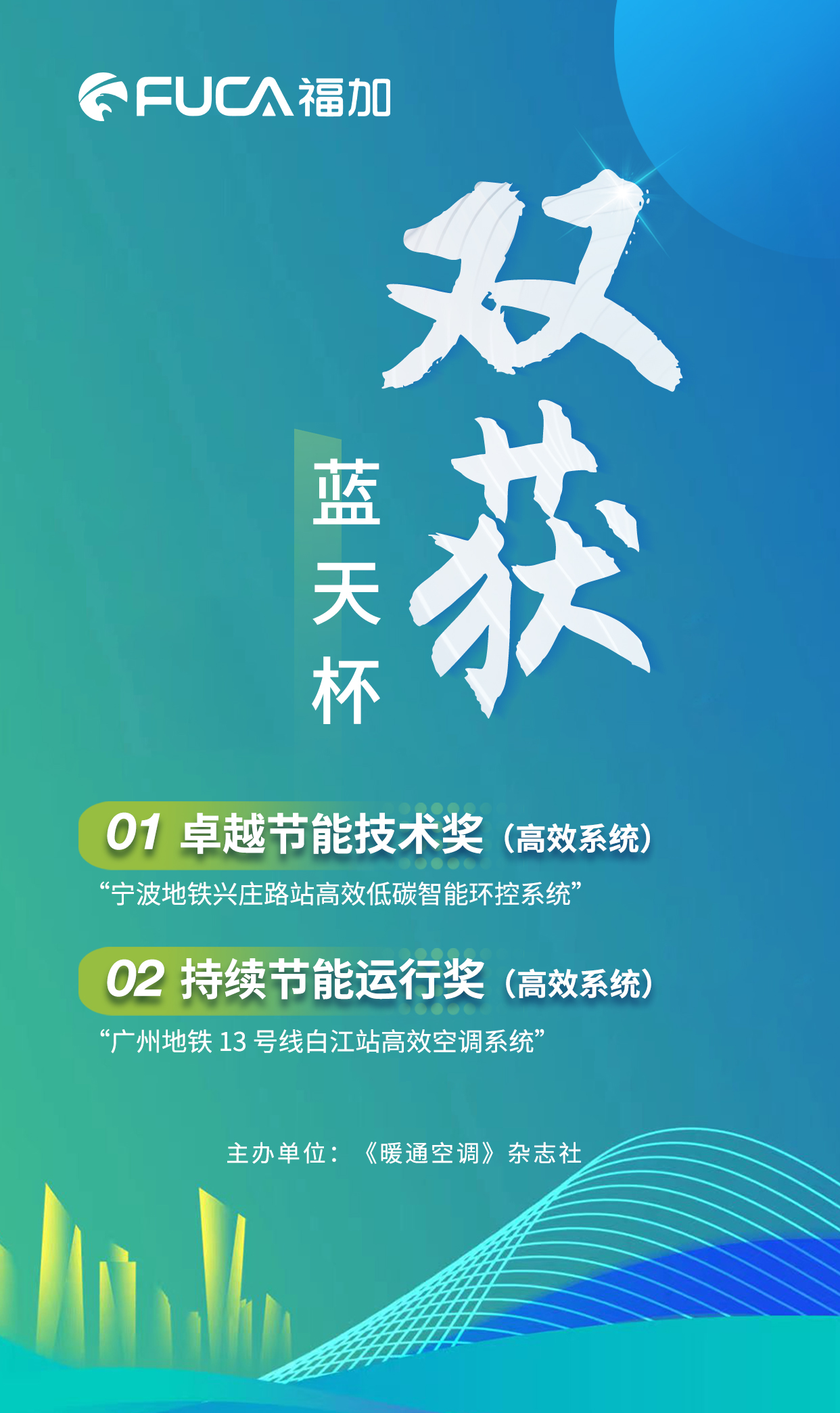 12月7日——11日,2022《暖通空調(diào)》雜志年會暨第四屆暖通空調(diào)工程技術(shù)年會于線上舉辦,會上揭曉了“藍(lán)天杯”獲獎項目,福加實施的寧波地鐵和廣州地鐵高效系統(tǒng)節(jié)能項目雙獲藍(lán)天杯并受邀作優(yōu)秀案例分享。