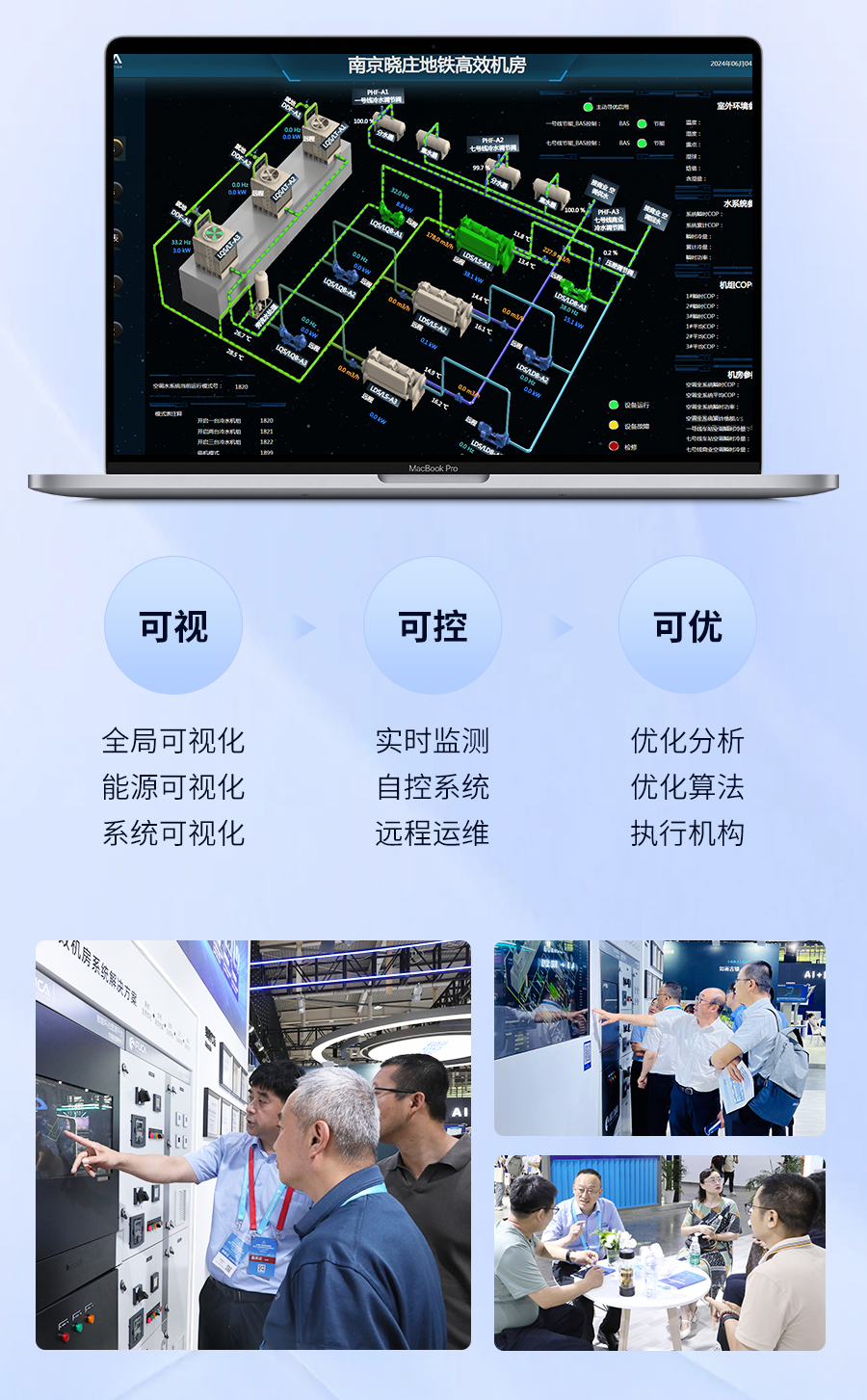 南京地鐵集團(tuán)佘董事長蒞臨天加展臺(tái),佘董對(duì)南京地鐵高效機(jī)房試點(diǎn)站-曉莊站項(xiàng)目予以了關(guān)注和認(rèn)可,該項(xiàng)目是由天加和福加聯(lián)合實(shí)施,于2023年交付,其制冷機(jī)房系統(tǒng)年均運(yùn)行能效比達(dá)6.0以上,空調(diào)全系統(tǒng)年均運(yùn)行能效比達(dá)4.2以上,是南京首個(gè)基于高效制冷機(jī)房能效指標(biāo)交付的軌道交通地下站點(diǎn)。