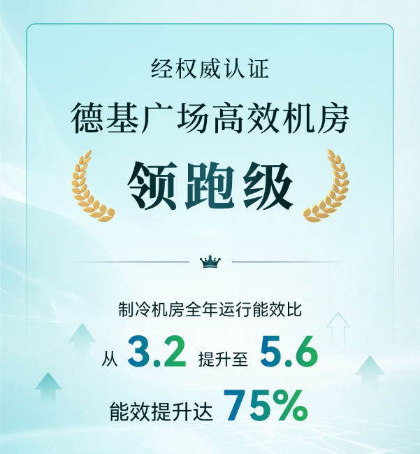 德基廣場1期高效機(jī)房節(jié)能改造項(xiàng)目,經(jīng)權(quán)威檢測制冷機(jī)房全年運(yùn)行能效比達(dá)5.6,機(jī)房系統(tǒng)被合肥通用機(jī)電產(chǎn)品檢測院認(rèn)證為“領(lǐng)跑級(jí)”。