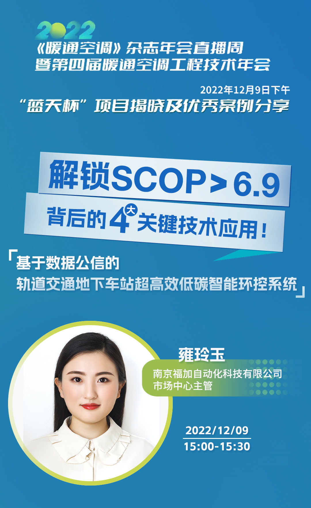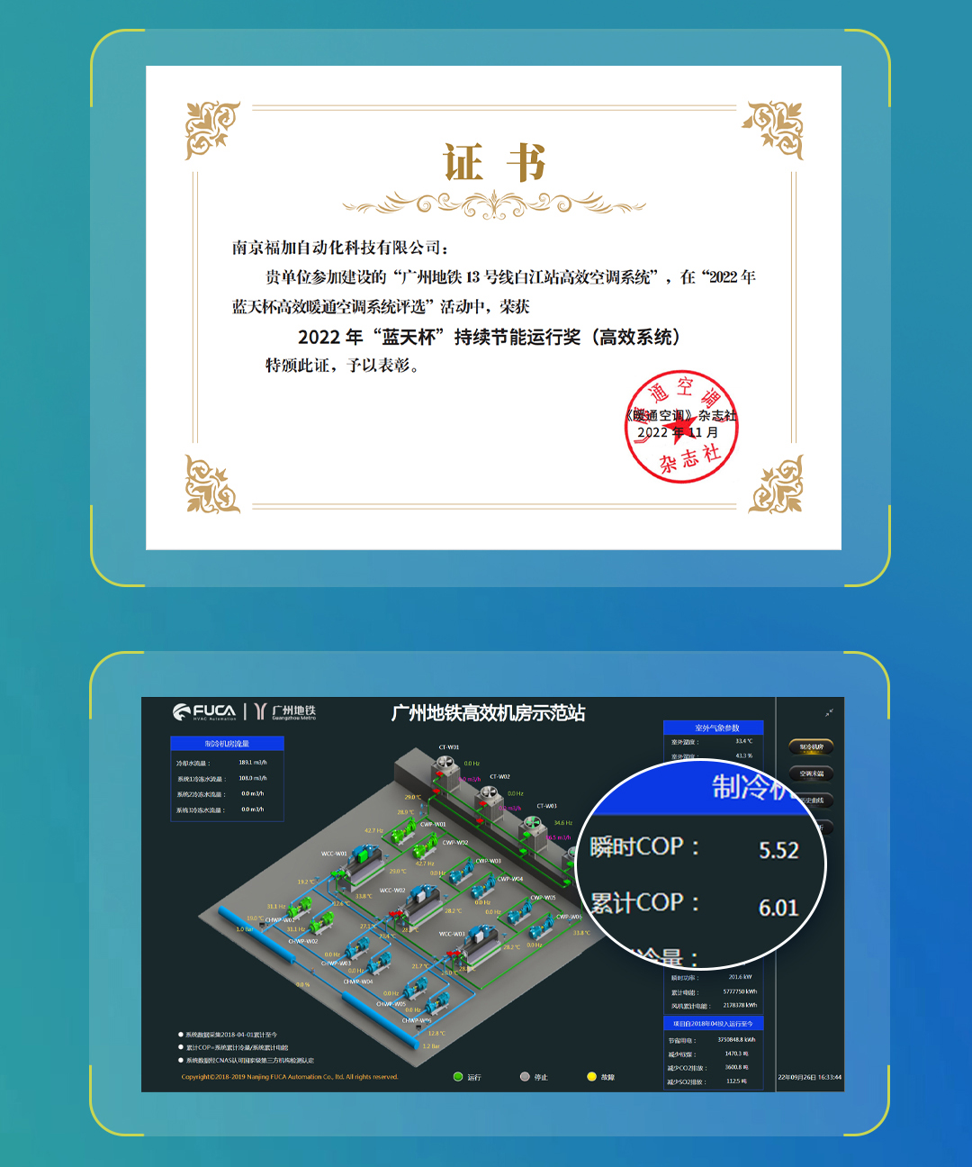 12月7日——11日,2022《暖通空調(diào)》雜志年會暨第四屆暖通空調(diào)工程技術(shù)年會于線上舉辦,會上揭曉了“藍(lán)天杯”獲獎項目,福加實施的寧波地鐵和廣州地鐵高效系統(tǒng)節(jié)能項目雙獲藍(lán)天杯并受邀作優(yōu)秀案例分享。